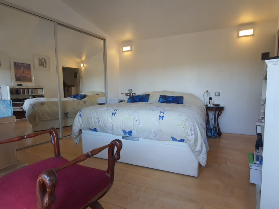A l'étage avec accès direct sur la terrasse panoramique, 2 chambres, dont une mansardée, salle d'eau wc .