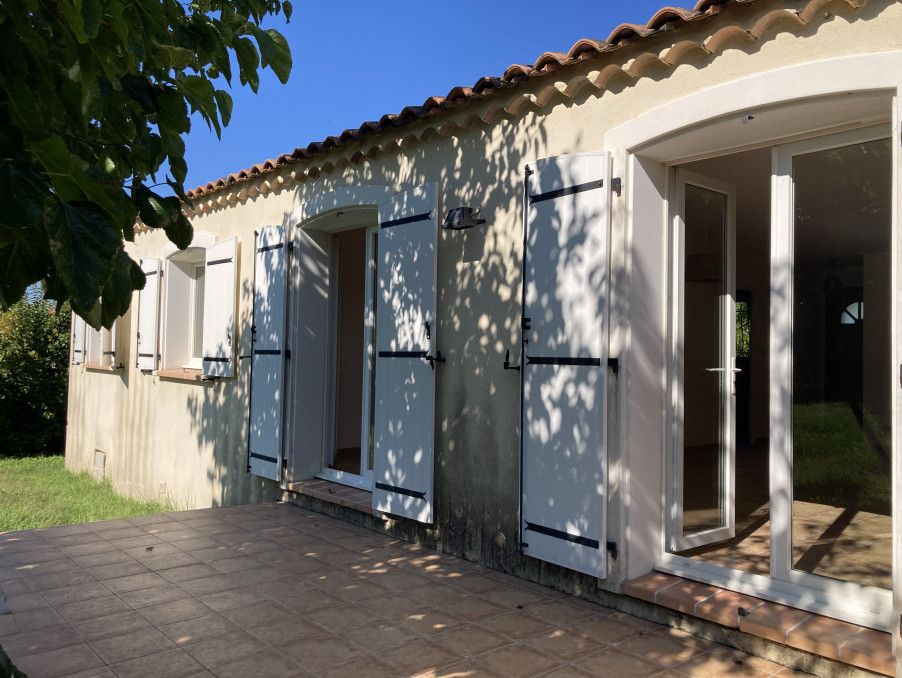 Aux portes du village, au calme, pour tout faire à pied, maison construite en 2006 sur un terrain clos, arboré de 954 m2 . Située au coeur d'un lotissement, porche d'entrée, séjour salon 46 m2 accès direct sur terrasse et jardin, cuisine aménagée, 3 chambres avec placards aménagés, salle de bains, wc .