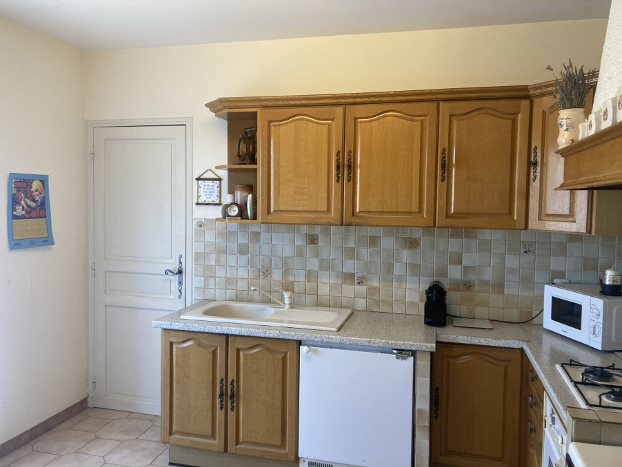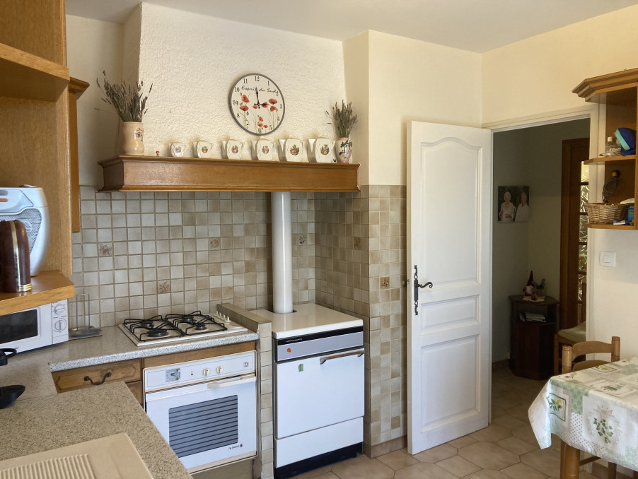 Porche, entrée + placard, séjour salon 28 m2 cheminée ( insert ), accès direct sur terrasse (VUE) par 2 portes fenêtres, cuisine aménagée et équipée 10.20 m2